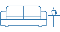 дома, сидя на диване